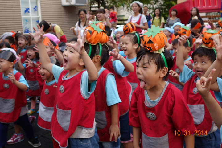 來進行,活動前各班級的教室布置,即呈現出萬聖節即將到來的景象,而藝術創作課程時,藝術老師也安排了相關課程,並且利用集體創作的作品將室內遊戲室布置得非常有萬聖節的氣氛。